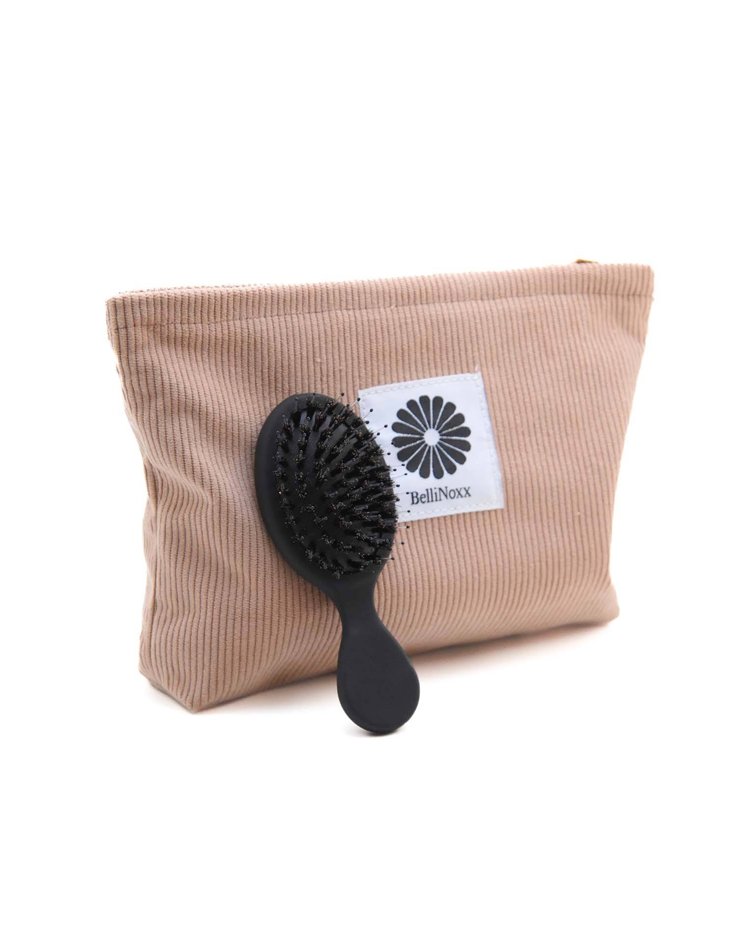 En snygg väska med plats för håraccessoarer för både tävling och hemmaförvaring, tillverkad i slitstark ribbad sammet som gör den lämplig att använda i stallet. Insidan är tillverkad i ett smutsavvisande material för att skydda dina håraccessoarer från olika typer av smuts. Väskan finns i två färger - svart och varm beige - och har en guldfärgad dragkedja