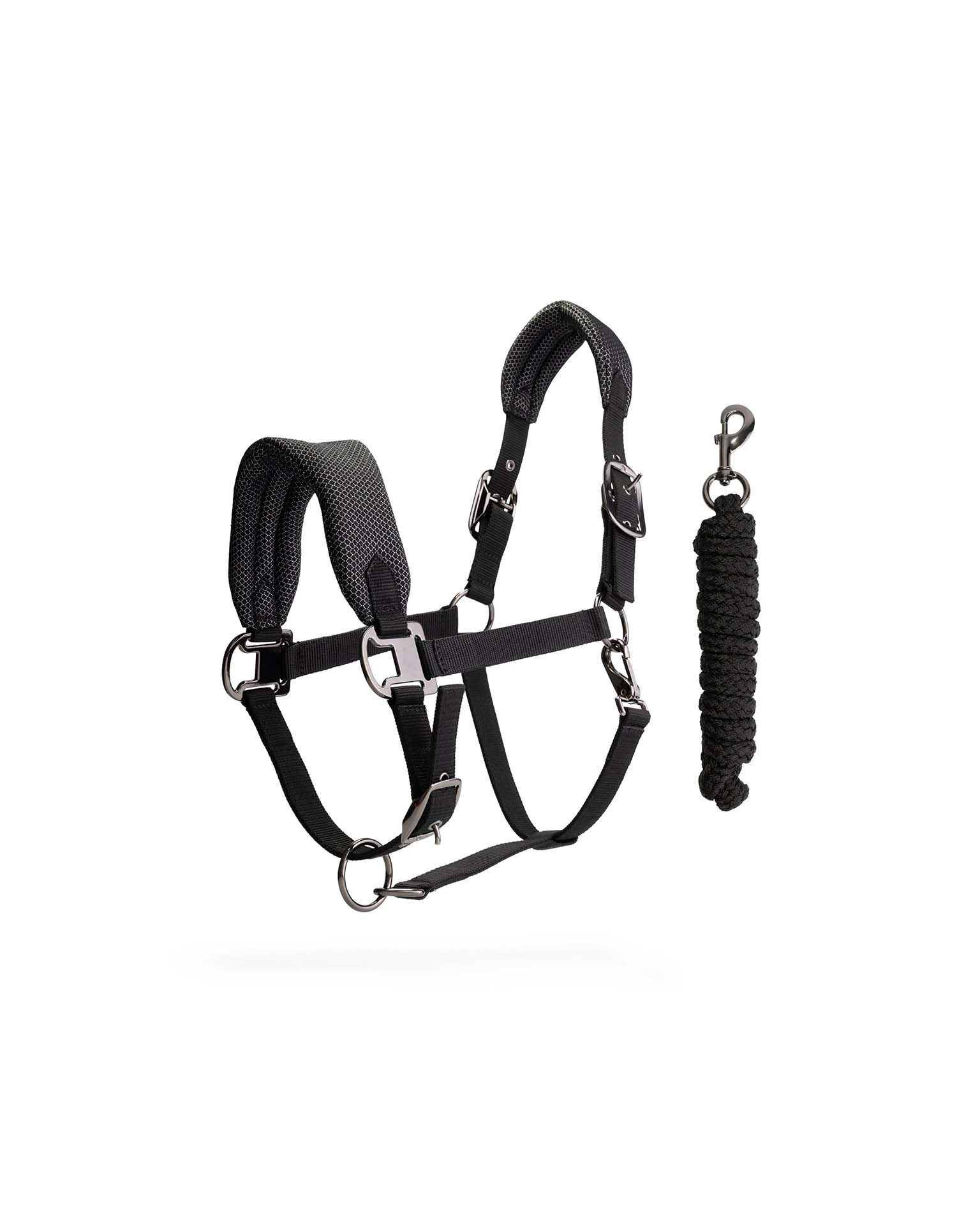 En mjuk, högkvalitativ nylonhalter som kombinerar praktiska egenskaper med förstklassig komfort. Den är utrustad med ventilerande meshpanelervid halsringningen och i midjebandet. De vadderade panelerna ger en jämn viktfördelning och förhindrar skav - ett särskilt bra val för känsliga hästar.